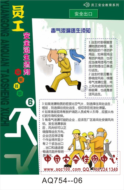 AQ754-06员工安全逃生须知宣传挂图 毒气泄漏逃生须知