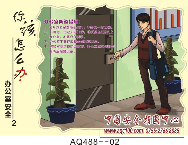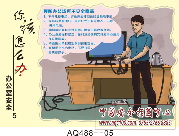 对于“坐班族”来说,一天的大部分时间要在办公室度过,要做到每天“平平安安回家去”,良好的安全意识和习惯至关重要。本系列张贴用幽默的漫画配以轻快的文字,将办公室应注意的安全常识跃然纸上,轻松阅读、轻松受益。