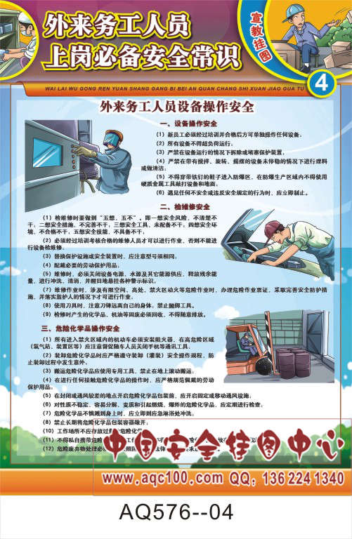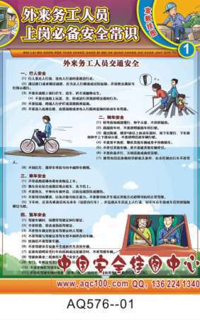 外来务工人员上岗必备的安全常识是我公司根据这几年来根据外来务工人员屡屡发生的事故所推出的重点挂图,文中具体包括,外来务工人员的交通安全外来务工人员上岗必备安全常识宣传挂图 集体生活住宿安全外来务工人员上岗必备安全常识宣传挂图 作业工程安全外来务工人员上岗必备安全常识宣传挂图 设备操作安全外来务工人员上岗必备安全常识宣传挂图 危险作业安全外来务工人员上岗必备安全常识宣传挂图 应急处理安全等,围绕了这几大点详细的谱写了上岗必备的安全常识,内文丰富解说详细,是各企业单位对外来务工人员的最佳安全宣传教育之选。