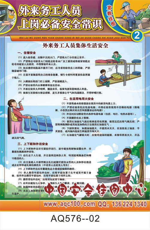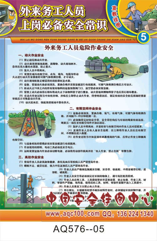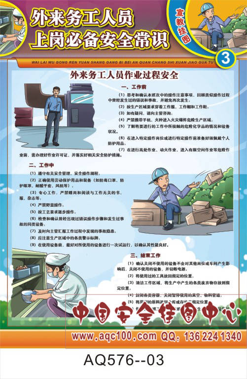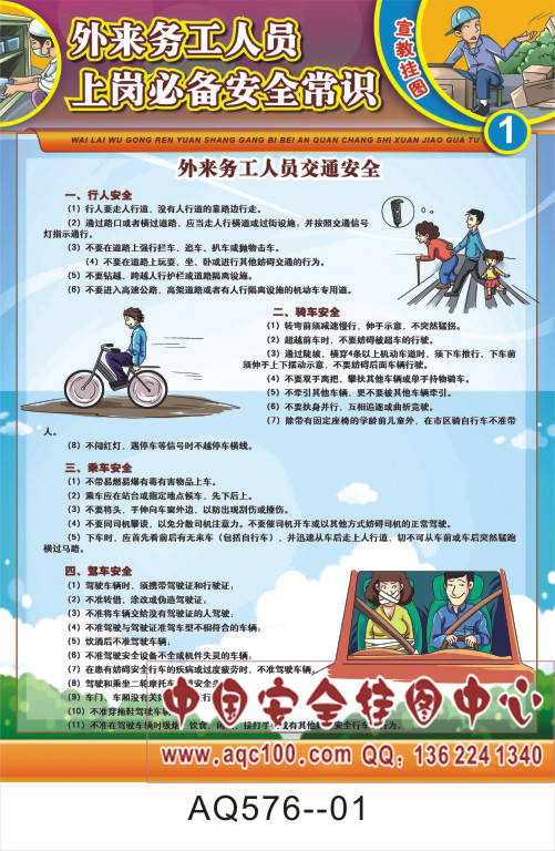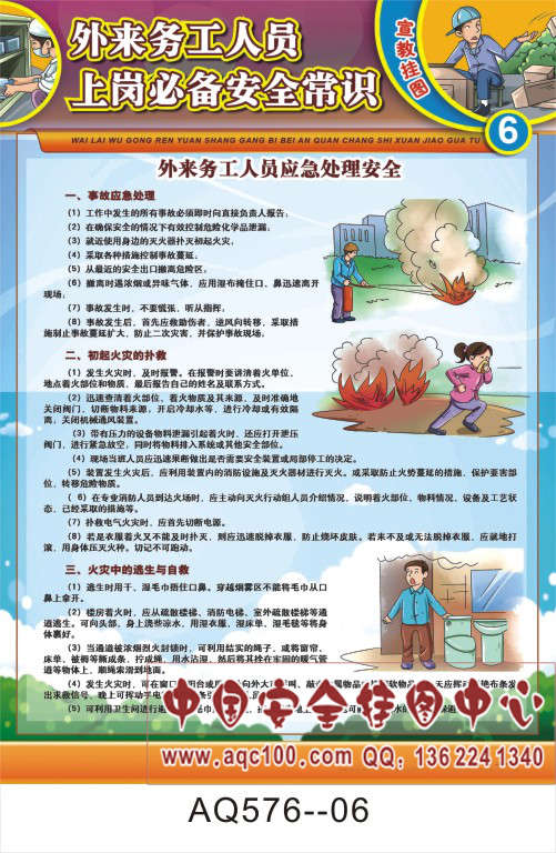 AQ576--外来务工人员上岗必备安全常识宣传挂图-6张