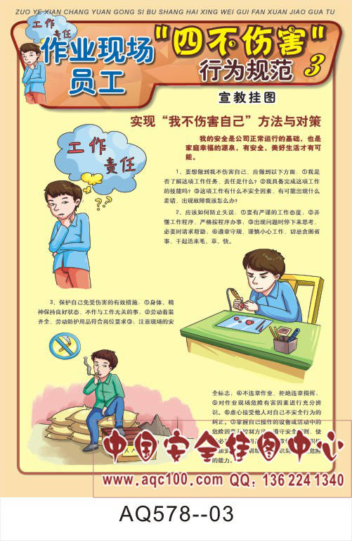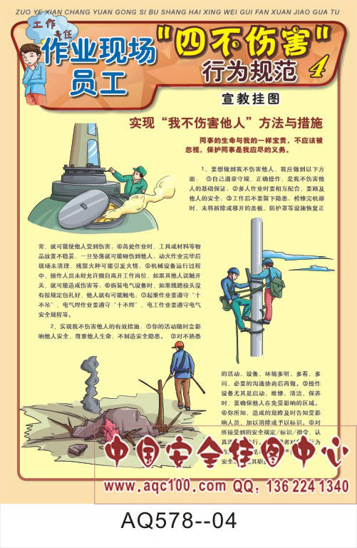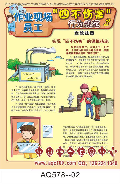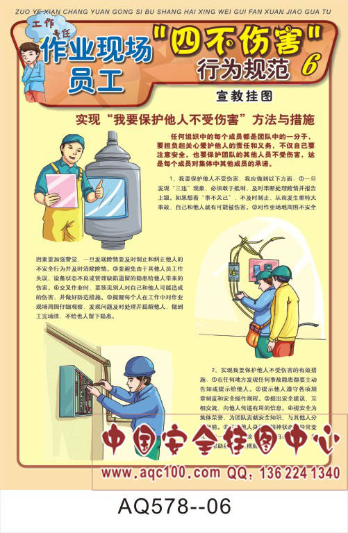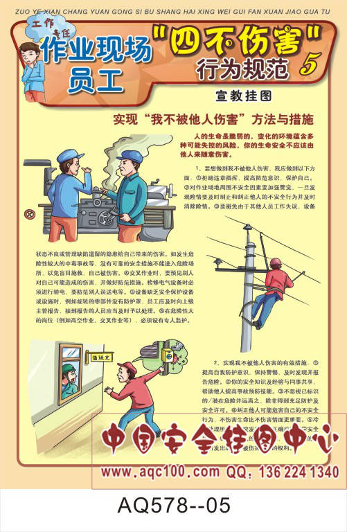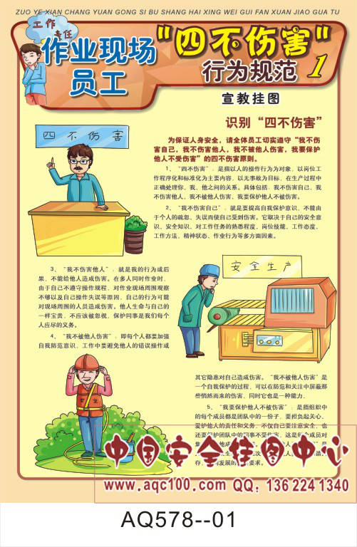 AQ578--作业现场员工四不伤害行为规范宣传挂图-6张