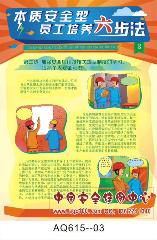 AQ615--本质安全型员工安全培养六步法宣传挂图-6张