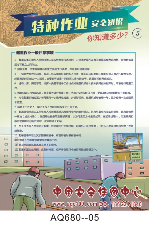 AQ680-05特种作业安全知识宣传挂图 起重作业一般注意事项