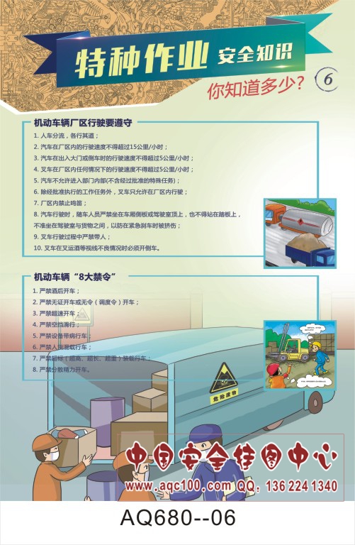 AQ680-06特种作业安全知识宣传挂图 机动车辆厂区行驶要遵守