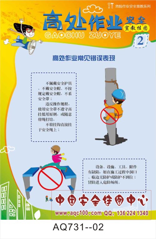 AQ731-02高处作业安全宣传挂图 高处作业常见错误表现