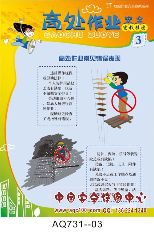 AQ731-03高处作业安全宣传挂图 高处作业常见错误表现
