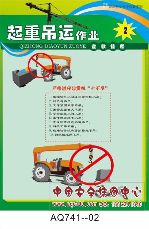 AQ741-02起重吊运作业宣传挂图 严格遵守起重机“十不吊”