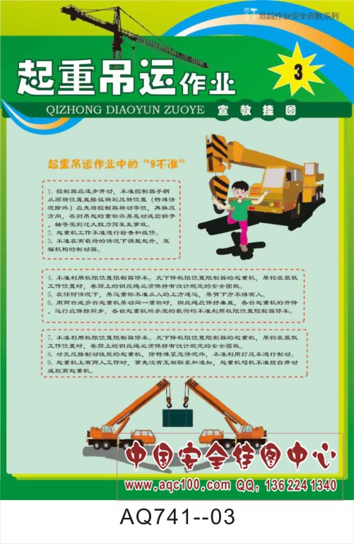 AQ741-03起重吊运作业宣传挂图 起重吊运作业中的“9不准”