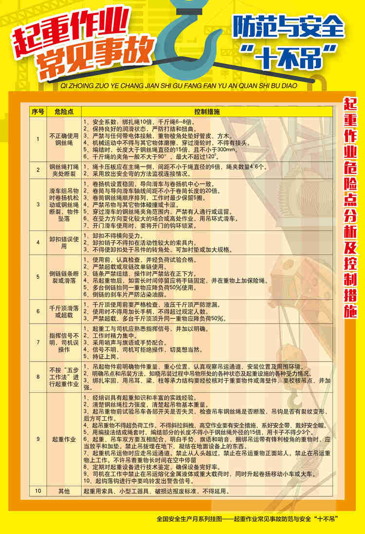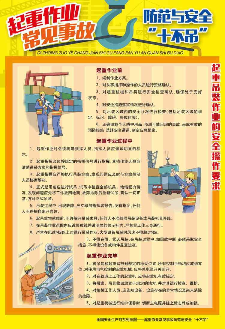 TAG:安全挂图 起重作业 常见事故防范 安全“十不吊” 安全宣传挂图 AQ5058