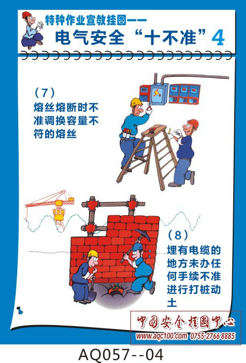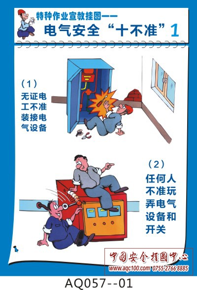 AQ057-01 无证电工不准装接电气设备,任何人不准玩弄电气设备和开关