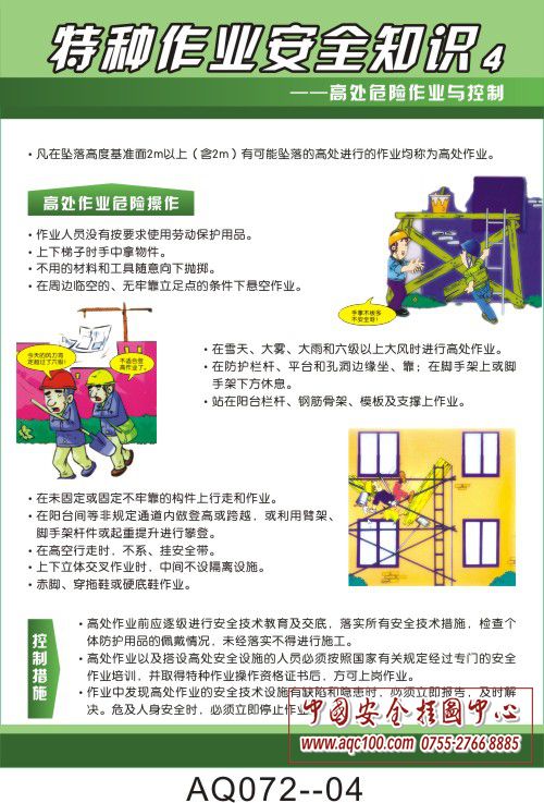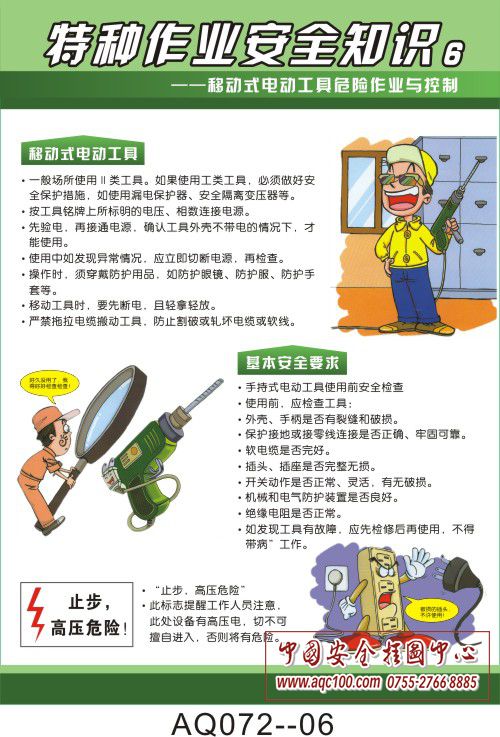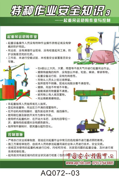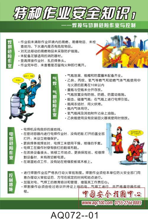 本套挂图主要介绍企业特种作业的安全知识,内容包括: 焊接与切割危险、锅炉运行危险、起重吊运危险、高处危险、电气危险、移动式电动工具危险等。该套挂图以安全常识为主,配有生动的插图,易于各特种行业职工随时观览、学习。