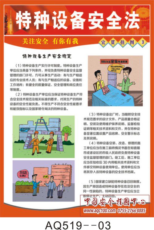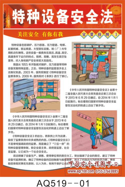 AQ519-01特种设备安全法常识挂图 关注安全 有你有我