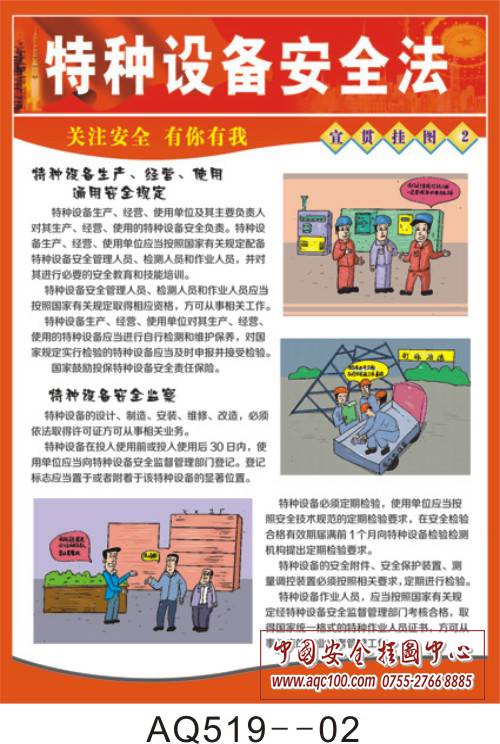 AQ519-02特种设备安全法常识挂图 特种设备生产、经营、使用、通用安全规定