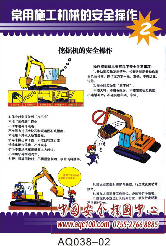 AQ038-02常用施工机械的安全操作挂图 挖掘机的安全操作