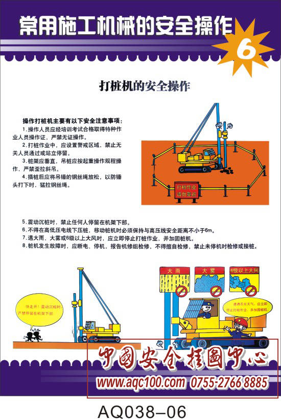 AQ038-06常用施工机械的安全操作挂图 打桩机的安全操作
