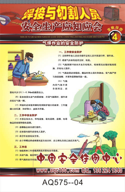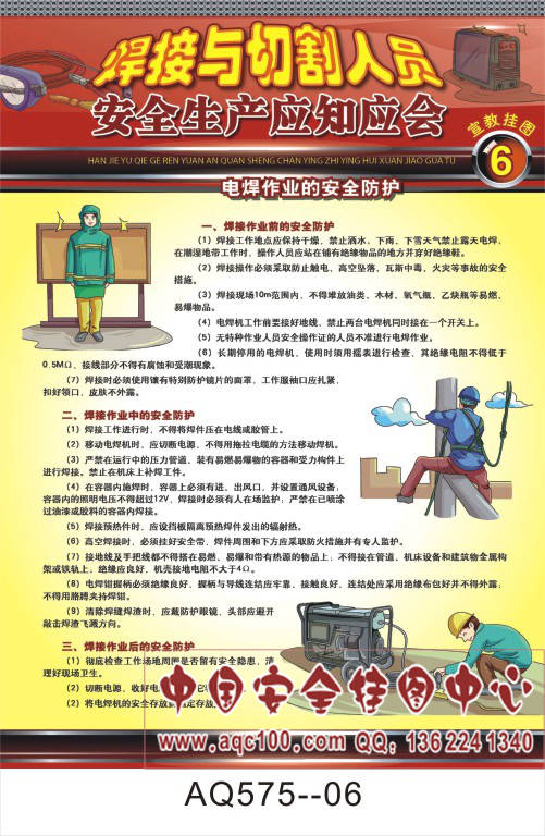 AQ575--焊接与切割人员安全生产应知应会宣传挂图-6张