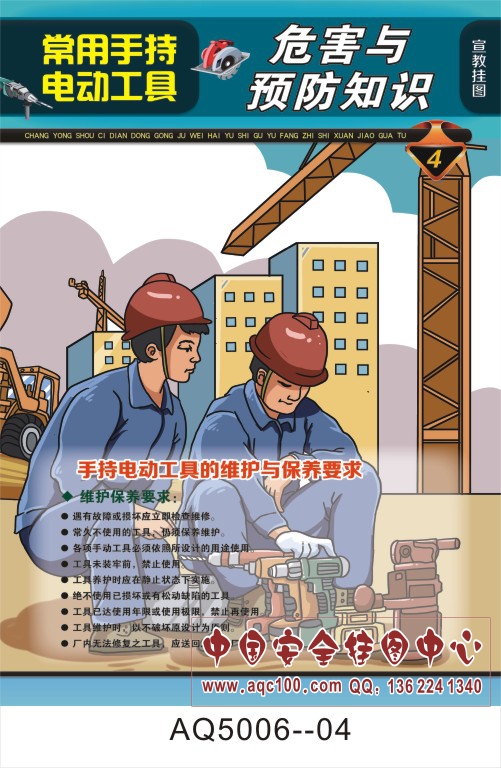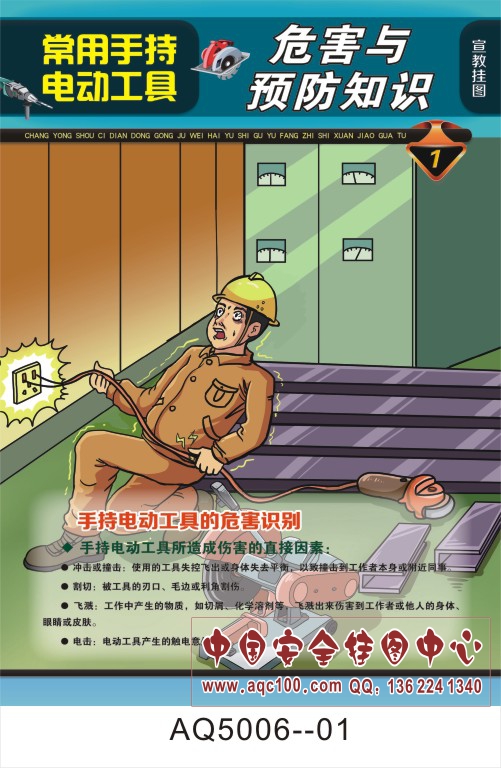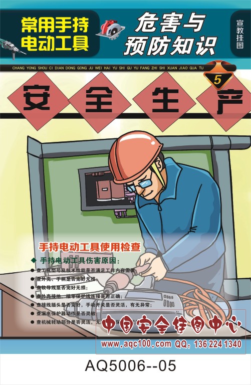 AQ5006--常用手持电动工具危害与事故预防知识宣传挂图-6张