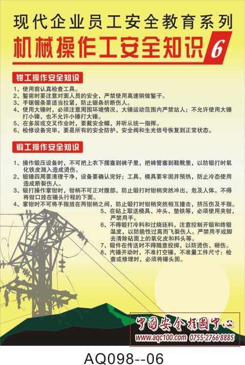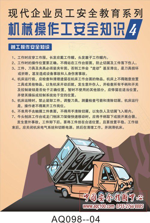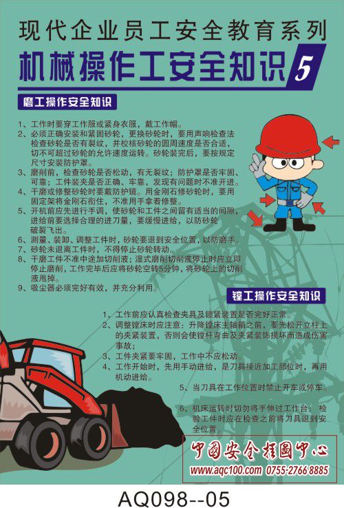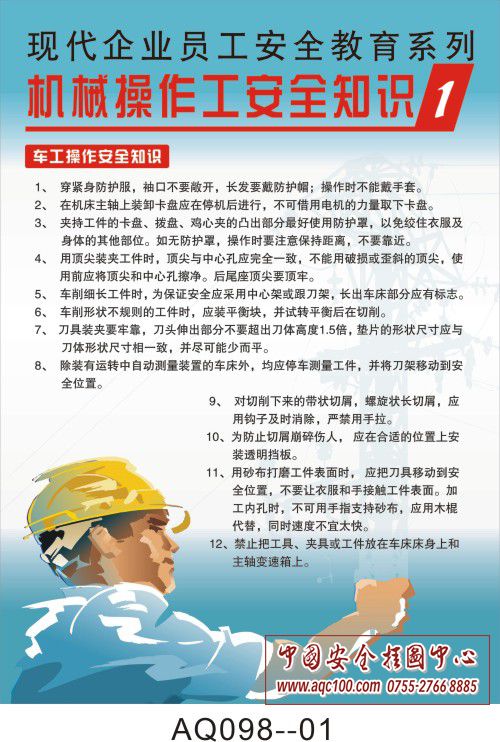 TAG:机械操作安全,车钻铣刨磨钳锻工,安全挂图,规章制度