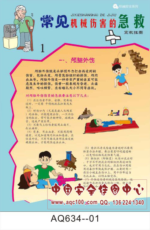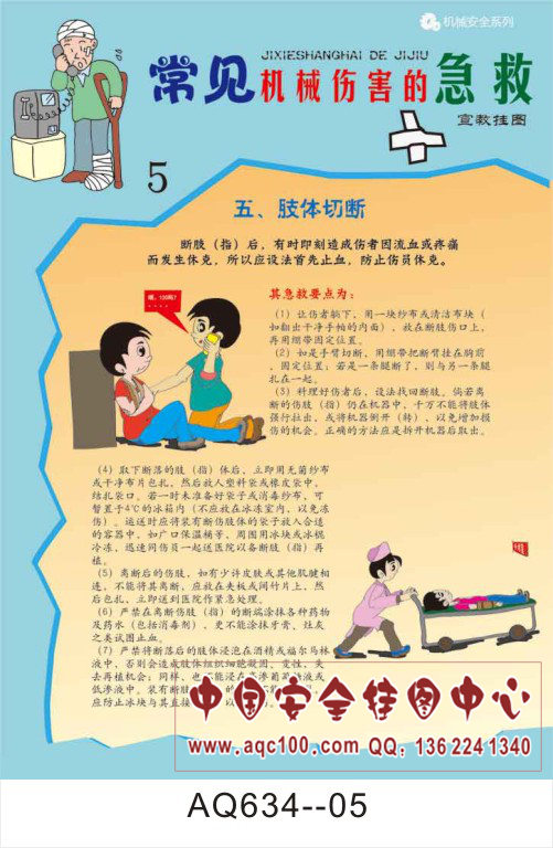 AQ634--常见机械伤害的急救宣传挂图-6张