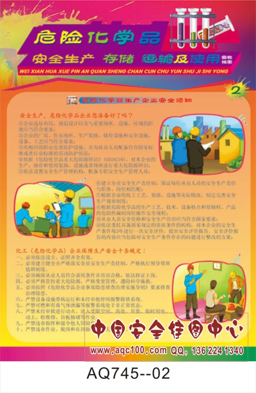 AQ745-02危险化学品安全生产存储运输及使用宣传挂图 危险化学品生产企业安全须知
