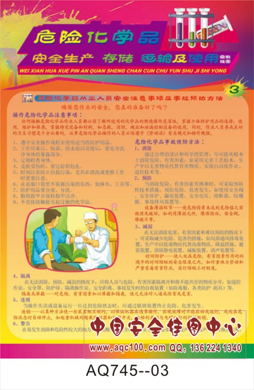 AQ745-03危险化学品安全生产存储运输及使用宣传挂图 危险化学品从业人员安全注意事项及事故预防方案