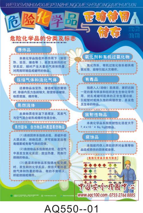 首页 >>化工|化学品安全挂图 >> 危险化学品正确使用与储存挂图-AQ550