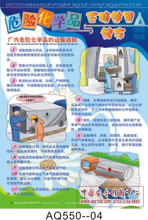 AQ550-01危险化学品正确使用与储存挂图 危险化学品的分类及标志 AQ550-02危险化学品正确使用与储存挂图 危险化学品的使用 AQ550-03危险化学品正确使用与储存挂图 危险化学品的储存 AQ550-04危险化学品正确使用与储存挂图 厂内危险化学品的运输装卸 AQ550-05危险化学品正确使用与储存挂图 废弃化学危险物品的销毁、处理 AQ550-06危险化学品正确使用与储存挂图 危险化学品安全事帮应急措施