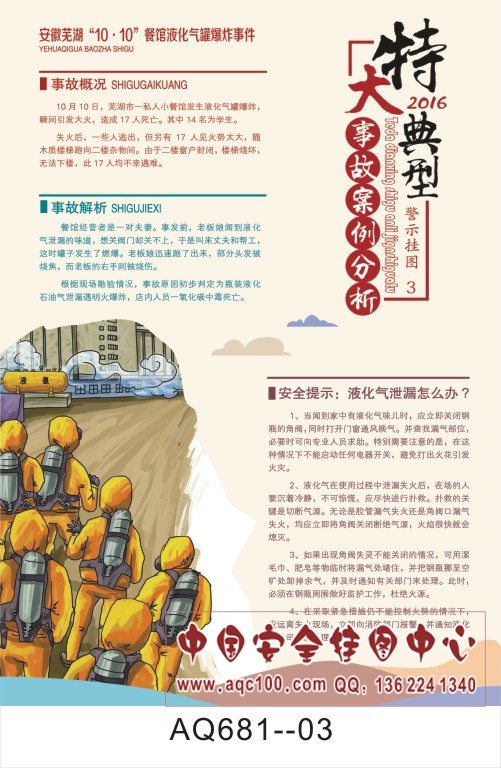 AQ681-03特大典型生产事故案例分析警示宣传挂图 安徽芜湖10·10餐馆液化气罐爆炸事件