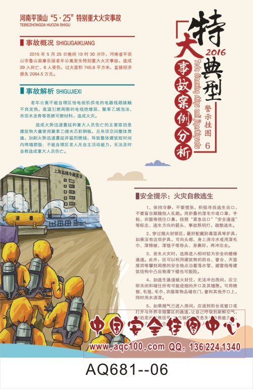 AQ681-06特大典型生产事故案例分析警示宣传挂图 河南平顶山5·25特别重大火灾事故