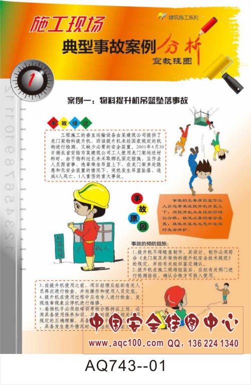 AQ743-01施工现场典型事故案例分析宣传挂图 物料提升机吊篮坠落事故