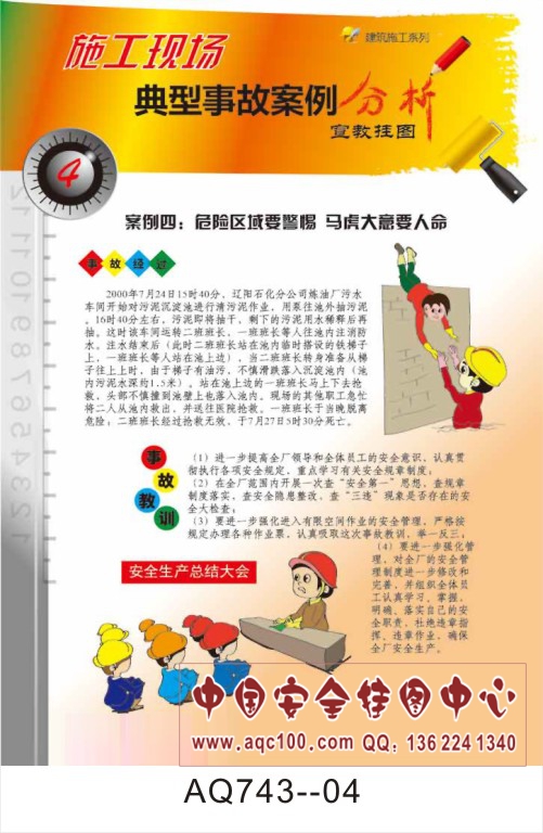 AQ743-04施工现场典型事故案例分析宣传挂图 危险区域要警惕 马虎大意要人命