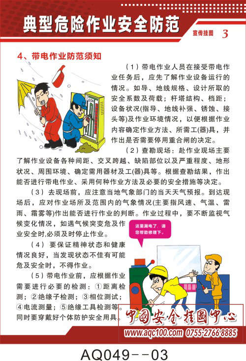 AQ049-03典型危险作业安全防范挂图-带电作业防范须知