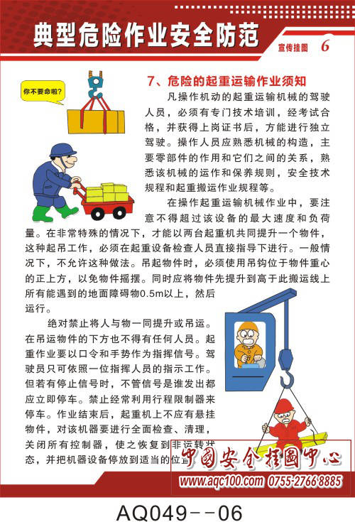 AQ049-06典型危险作业安全防范挂图-危险的起重运输作业须知