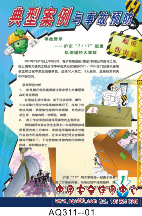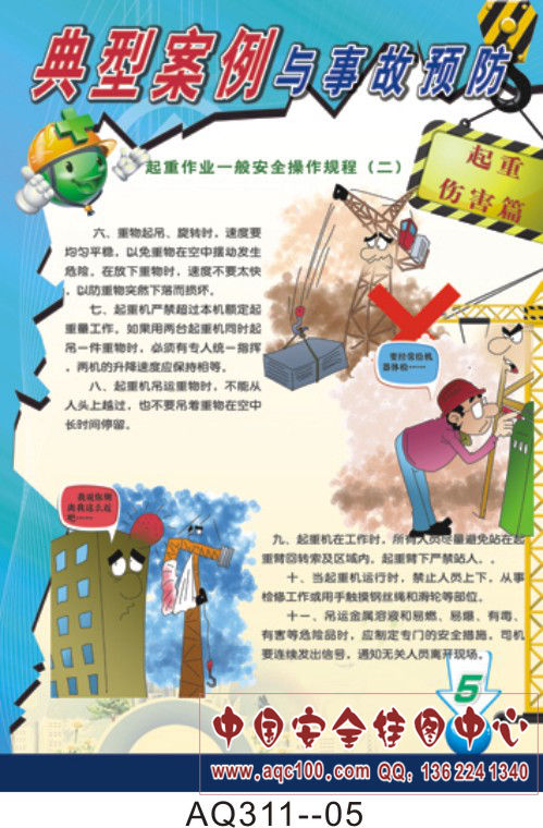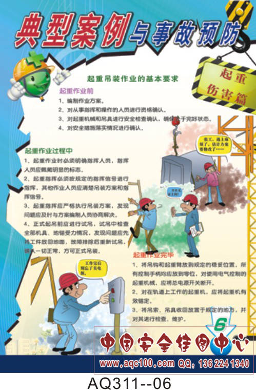 AQ311-01-典型案例与事故预防挂图-起重伤害篇-事故警示 AQ311-02-典型案例与事故预防挂图-起重伤害篇-起重作业事故发生特点 AQ311-03-典型案例与事故预防挂图-起重伤害篇-起重作业中的危险因素 AQ311-04-典型案例与事故预防挂图-起重伤害篇-起重作业一般安全操作规程<一> AQ311-05-典型案例与事故预防挂图-起重伤害篇-起重作业一般安全操作规程<二> AQ311-06-典型案例与事故预防挂图-起重伤害篇-起重吊装作业的基本要求