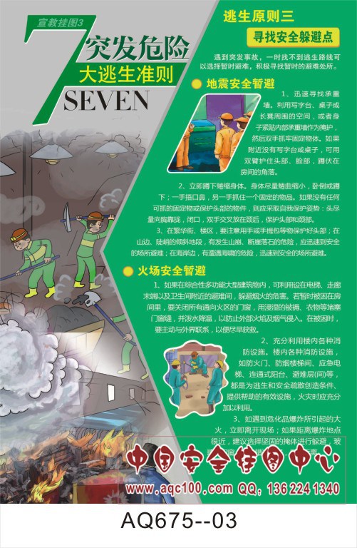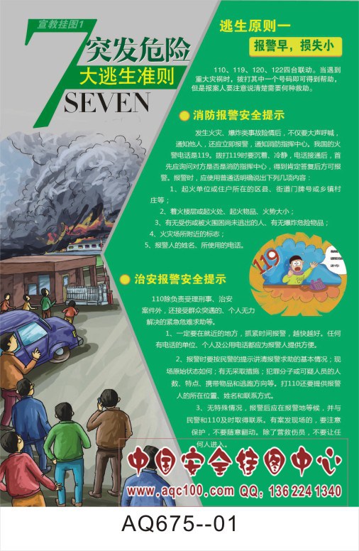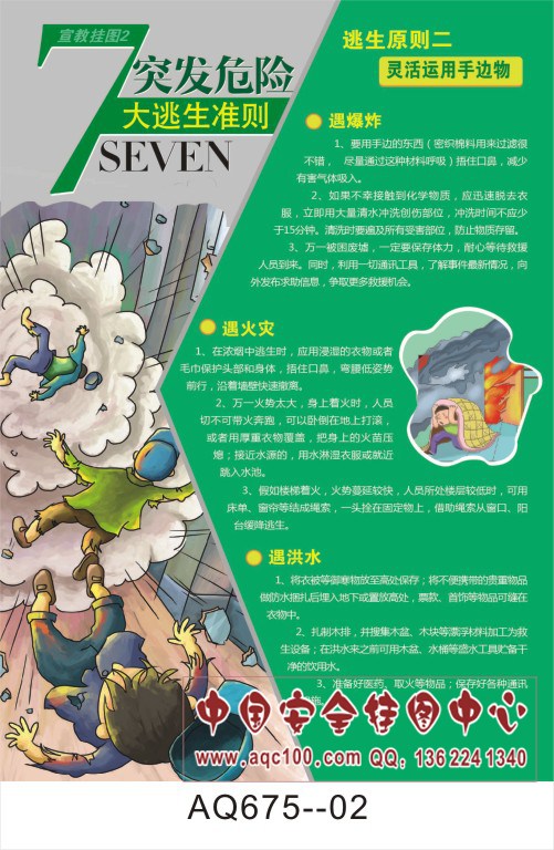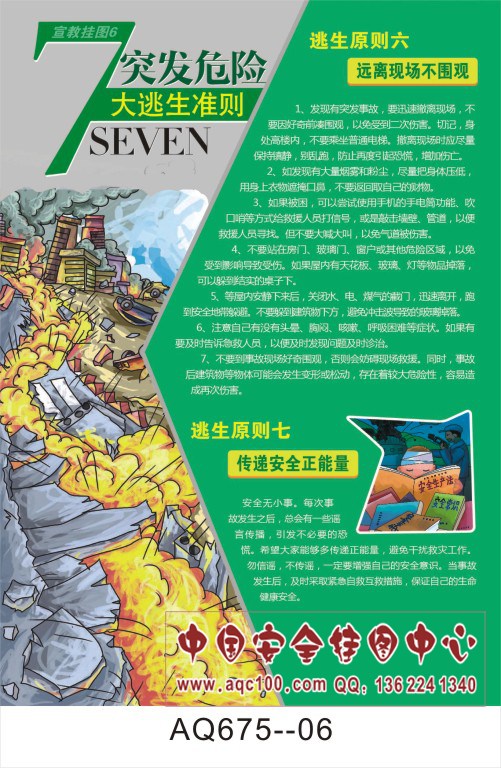 AQ675--突发危险七大逃生准则宣传挂图-6张
