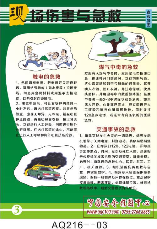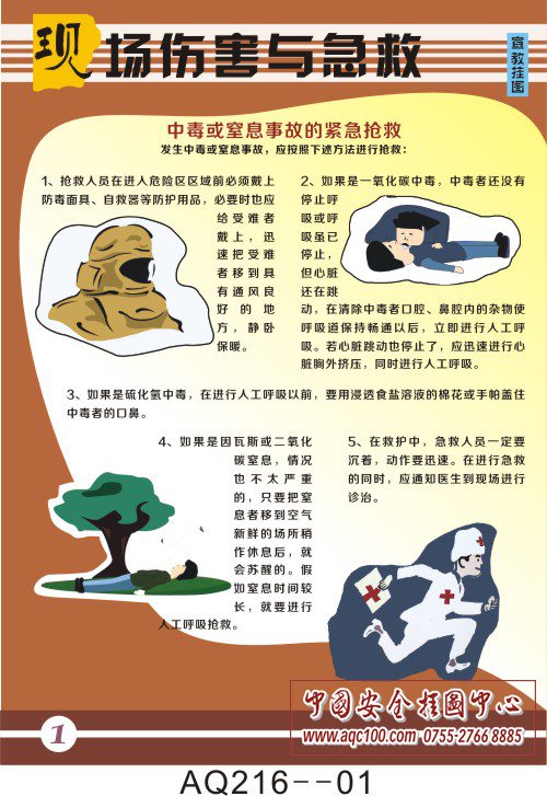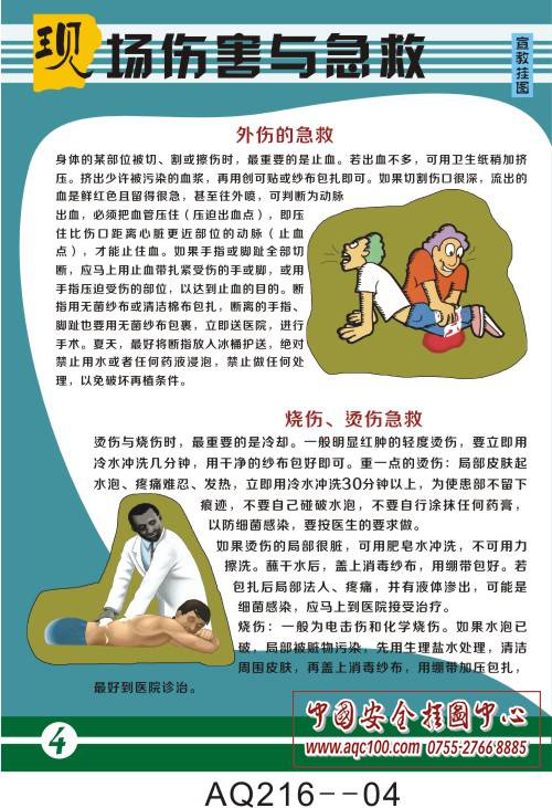 首页 >>应急自救互救知识管理条例,防灾减灾应急管理 >> 现场伤害与急救宣传挂图-AQ216