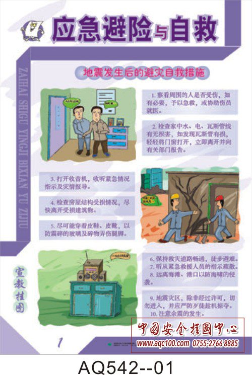 AQ542-01应急避险与自救宣教挂图 地震发生后的避灾自救措施