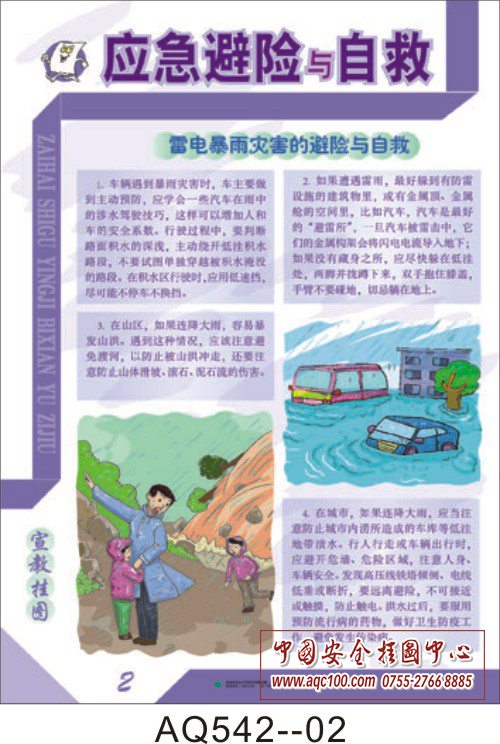 AQ542-02应急避险与自救宣教挂图 雷电暴雨灾害的避险与自救