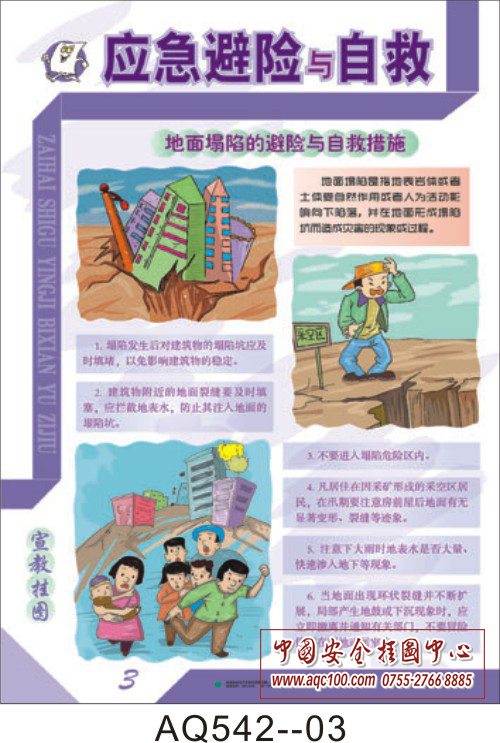 AQ542-03应急避险与自救宣教挂图 地面塌陷的避险与自救措施