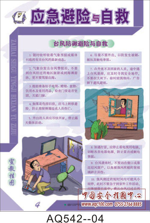 AQ542-04应急避险与自救宣教挂图 台风防御避险与自救