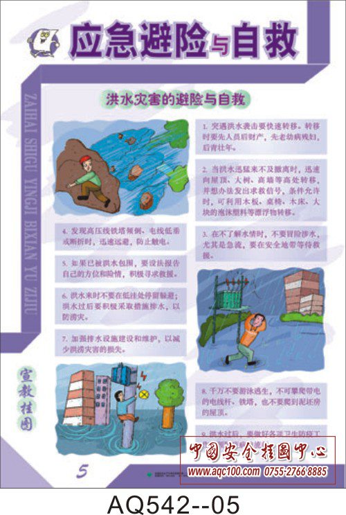 AQ542-05应急避险与自救宣教挂图 洪水灾害的避险与自救