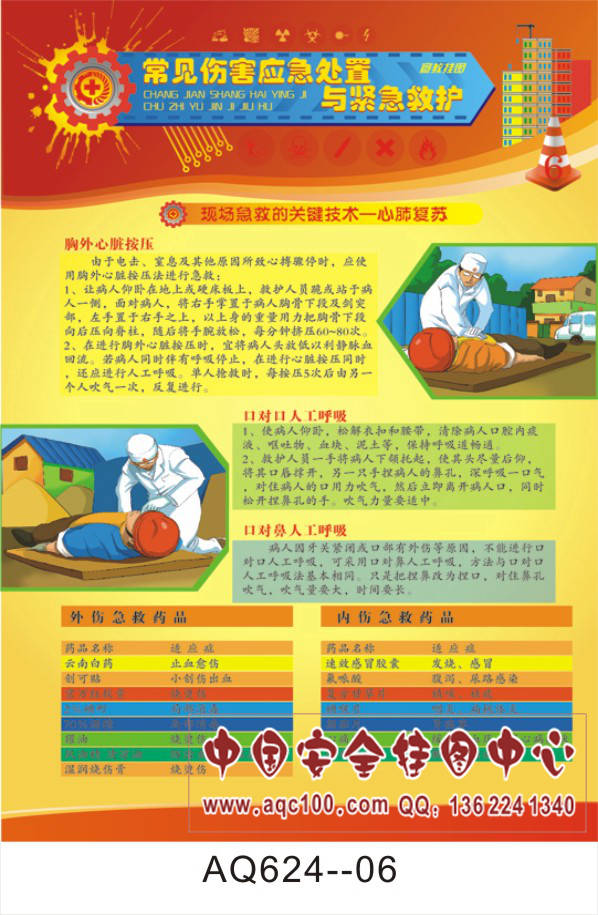 AQ624--常见伤害应急处置与紧急救护宣传挂图-6张