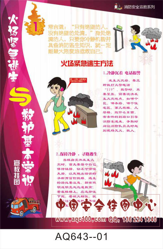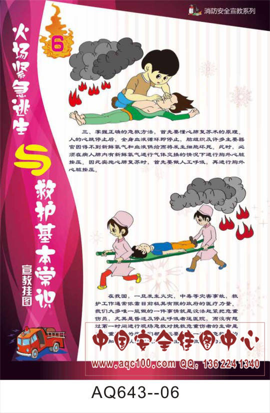 AQ643--火场紧急逃生与救护基本常识宣传挂图-6张