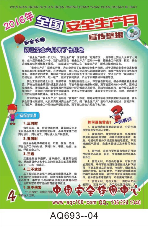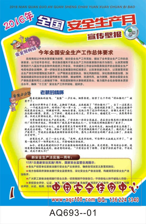 AQ693--2016年全国安全生产月宣传壁报挂图-6张