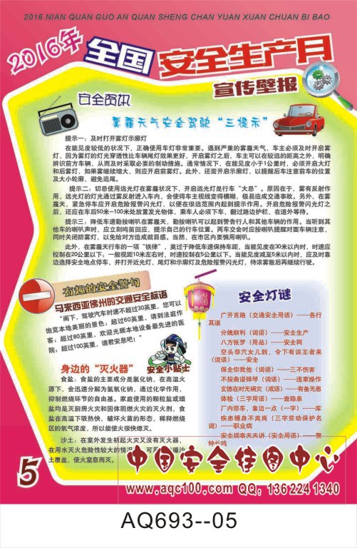 AQ693-05-2016年全国安全生产月宣传壁报挂图 交通安全、消防安全