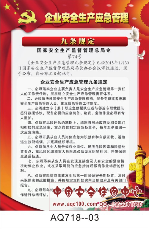AQ718-03-2016年安全生产月依法治安构建和谐主题宣传挂图 企业安全生产应急管理九条规定