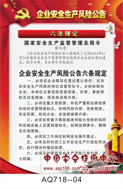 AQ718-04-2016年安全生产月依法治安构建和谐主题宣传挂图 企业安全生产风险公告六条规定