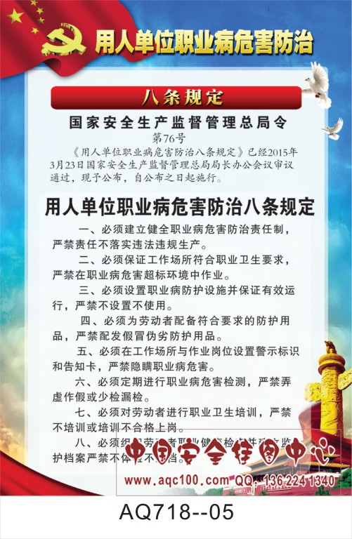 AQ718-05-2016年安全生产月依法治安构建和谐主题宣传挂图 用人单位职业病危害防治八条规定