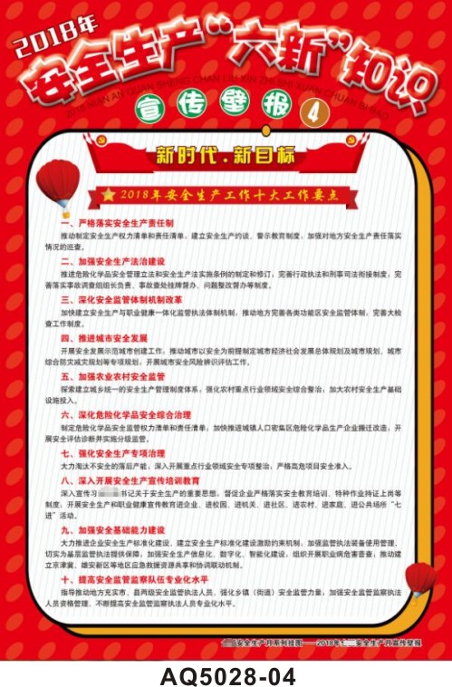 产品简介:AQ5028-2018年安全生产月六新知识宣传壁报-6张
