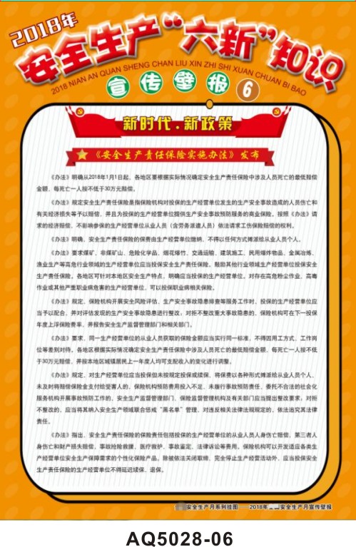 2018年安全生产月六新知识宣传壁报-AQ5028
